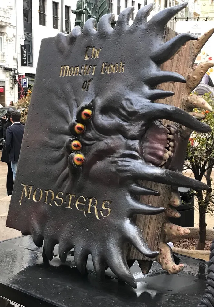 Este libro es una de las más icónicas imágenes de la saga, libro que se escondía debajo de la cama de Harry Potter a modo de mascota. Ahora en gran tamaño justo en frente del precioso mercado de Colón de la ciudad levantina.