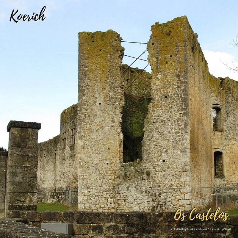 "O Castelo de Koerich é uma ruína localizada na aldeia de Koerich, no centro de Luxemburgo. Com uma história que remonta ao século XII, é um dos castelos do Vale dos Sete Castelos. Ficando no mesmo nível do vale do fluxo de Goeblange, a impressionante fortaleza do castelo e as paredes externas se misturam harmoniosamente com a igreja barroca e as casas antigas no centro da vila."