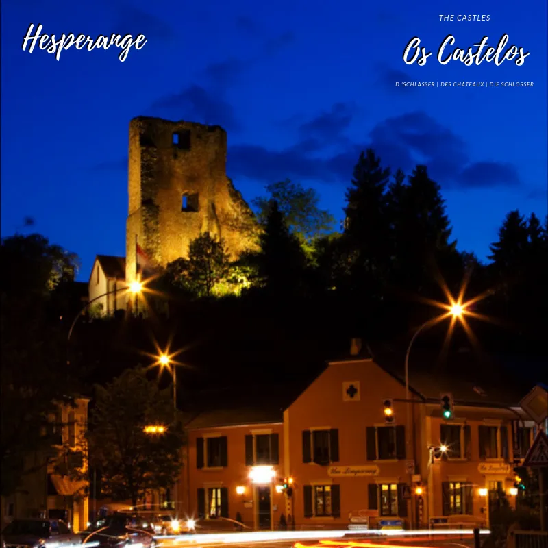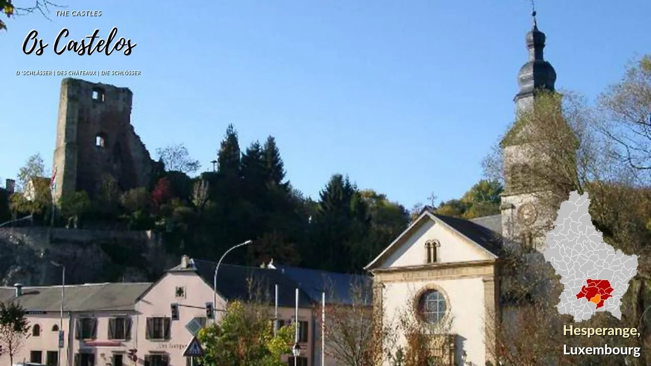 "Hesperange Castle é uma ruína localizada no alto da cidade de Hesperange, no sul do Luxemburgo."