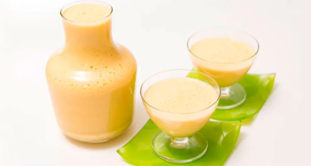 En un bolt hondo colocar las yemas de huevo, desprendiendo la telita transparente que la cubre, o sea utilizar solo el liquido amarillo. (si no retiras esa telita de la yema, el ponche sabrá a huevo y es desagradable).