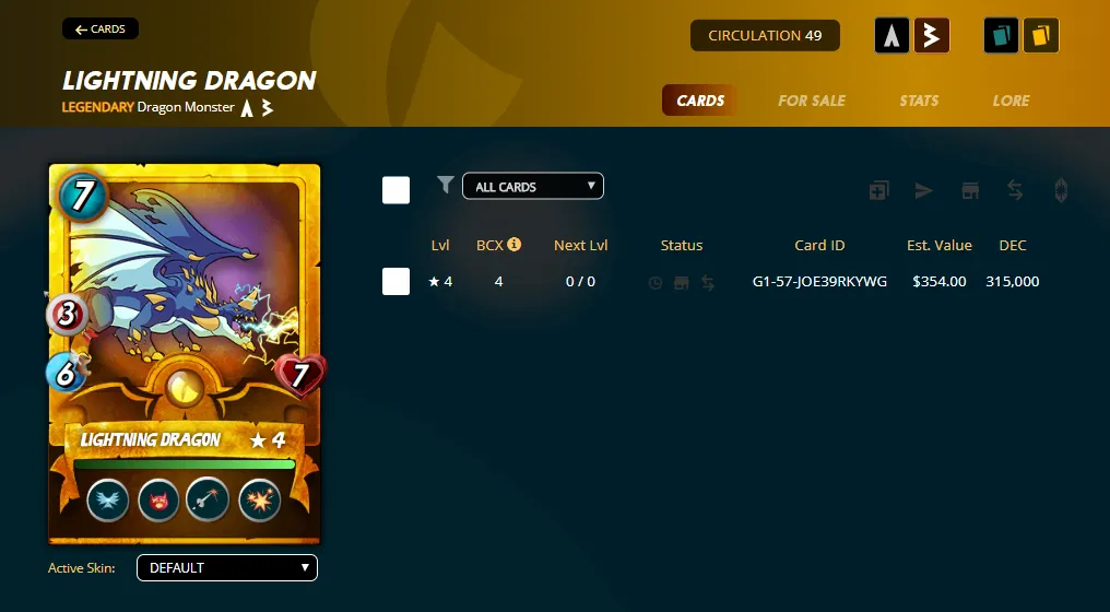 시장에서는 기존 카드들 거래가 여전히 활발하게 이루어지고 있습니다. 특히 요즘 베타 골레 매수주문이 많이 체결되는데요, 오늘은 라이트닝 드래곤이 65불에 매수되었습니다.