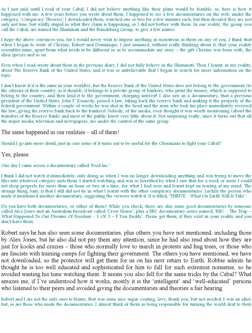 Yes, what we wrote about previously gave us cause to search in all the other realities we have visited, including ours. Arthur, we do not know what we will find if we search in another hundred realities, but in all those we have searched, the local Cabal have set in motion almost exactly the same plans, except that they vary in the lengths they are willing to go to – many are planning to collapse our populations to less than ten percent of what it is – and some to as low as one percent. One thing is the same, they all are planning for a world government, with all police and armies belonging to that government. Since their excuse for wanting a single world government is that all the pointless wars will stop, why do they need such an enormous army?! Are we, the citizens, the ones they will be needed for? Why, if such a government is so good for us?