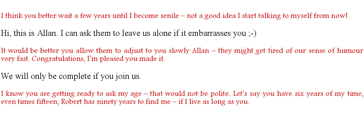 “It’s alright Allan, they are allowed to tease me about it. If you find yourself a child bride, you will have to allow it also.”
