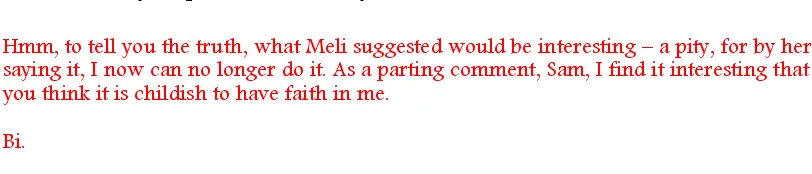 I guess that makes Meli our heroine - lol…the last thing she would want.