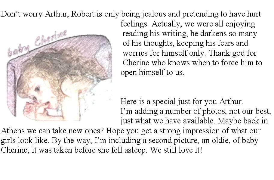 They made our experimentations, using tails for sex, funny, while also showing how they affected us. A minor clarification is due as I deliberately did not explain so as to intrigue Arthur. I expected him to comment, but it seems he will not and has accepted it as if it makes no difference. When the girls show scenes from our sexual activities, they do broadcast most of the emotions tied to the visual images of the love and the passion, but the images are edited.