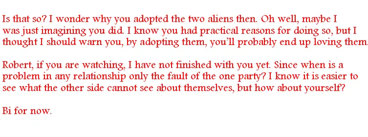 You may have thought Robert’s description of last night strange, but Robert was not amused when he found out Cherine had shared, sending our emoting and physical sensations to Shiyra.