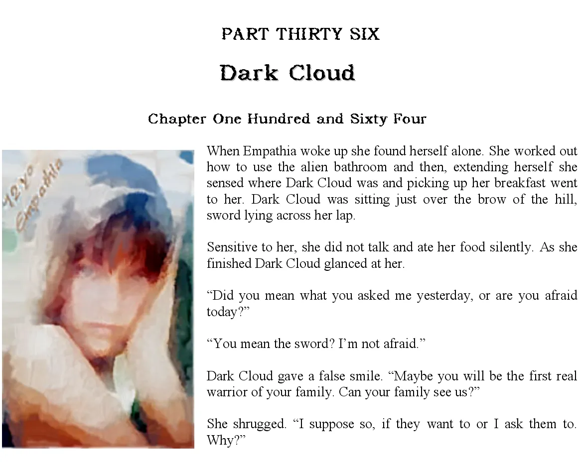 Dark Cloud shot her an angry look, but did not reply. Her anger told us she had wanted it, Empathia had guessed right and she did see her need as a weakness.