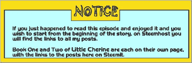 Wordlessly I stared at her. My heart was not big enough for her. It was breaking with love, drowning me. What else am I to learn, what else must she have been through. And I thought I was the adult, that I should guide her! What of the rest of the gamut of evil emotions of mankind has she had to endure? “How have you managed it Cherry-baby. How did you stay so pure and sweet? With such an ability to love so deeply.”