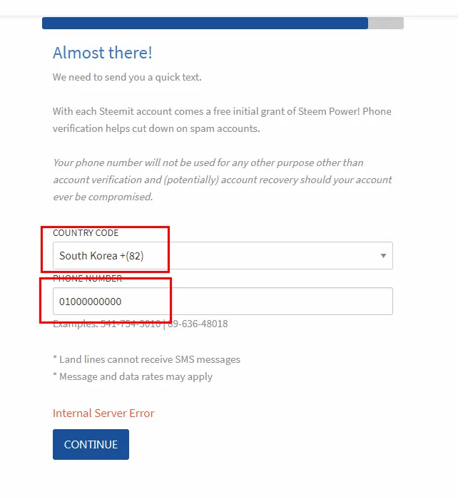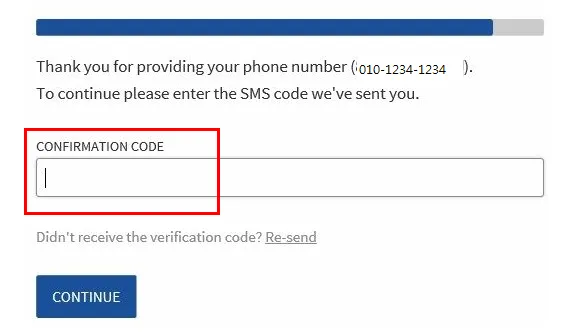 5. COUNTRY CODE >South /korea +(82) 대한민국 선택후 , 휴대폰 번호를 입력해주세요