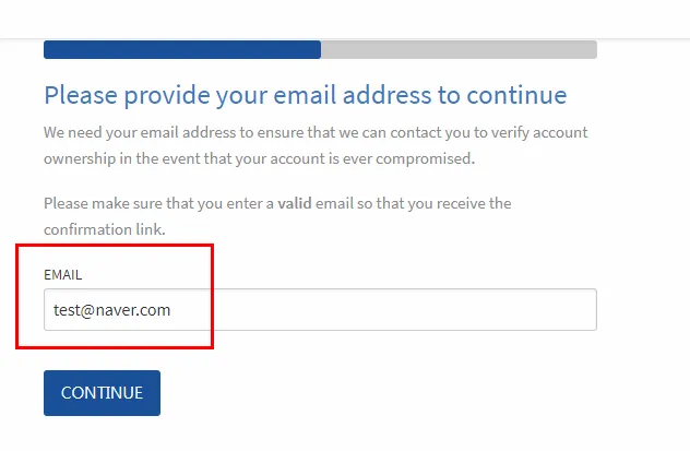 4. 이메일 인증을 받기 위해 현재 사용중인 이메일주소를 입력합니다.