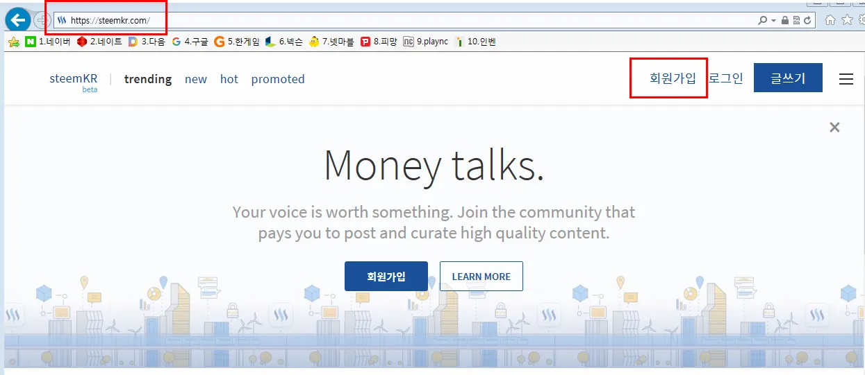1. 스팀잇 가입을 위해선 우선 https://steemkr.com/ 사이트로 접속을 합니다.