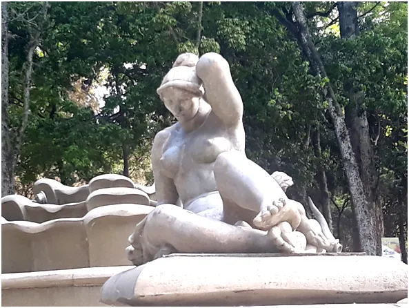Me ha parecido curioso el hecho de que estas imágenes por lo general se encuentran adornando alguna fuente, no sé si esto tiene algún significado, les prometo averiguarlo pero, si alguno lo sabe y quiere compartirlo, acepto la información. Otro lugar donde se hallan esas imágenes desnudas es en plazas, parques o redomas viales.