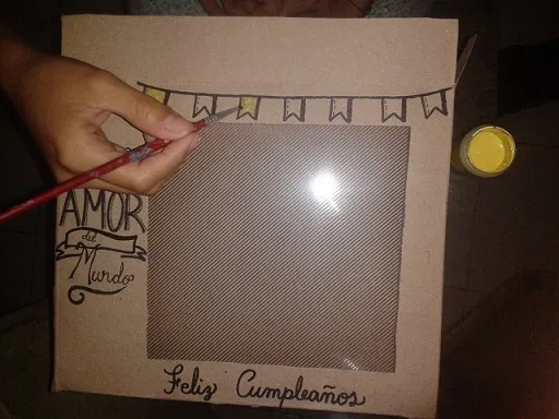 Decoré la parte externa con bonitos mensajes de cariño y felicitaciones (allí es donde das rienda a tu imaginación y retas a tu creatividad para personalizarla y decorarla a tu gusto).
