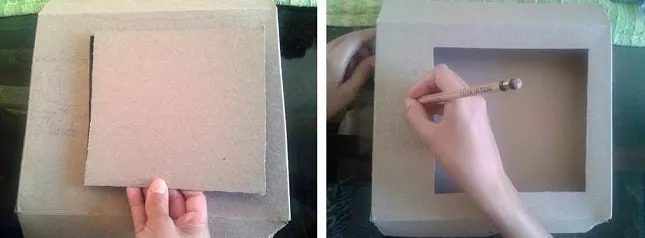 Lo primero que hice fue adecuar la caja al tamaño que necesitaba, luego recorté un cuadrado en la parte frontal y allí, por la parte de adentro, le pegué el acetato, debe ser transparente porque la idea es que se vea lo que contiene la caja.