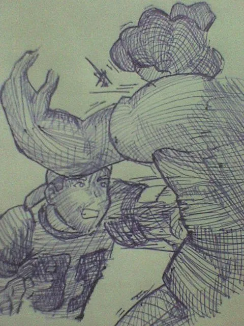 Esta representa una tecnica que ejecuto Eder para derrotar a Crasus, El SuperPunch lo bautice xD. (Que se muestra en la imagen anterior). La hice para guiarme en que deberia hacer, por eso esta tan fea jejeje es solo un dibujo guía.