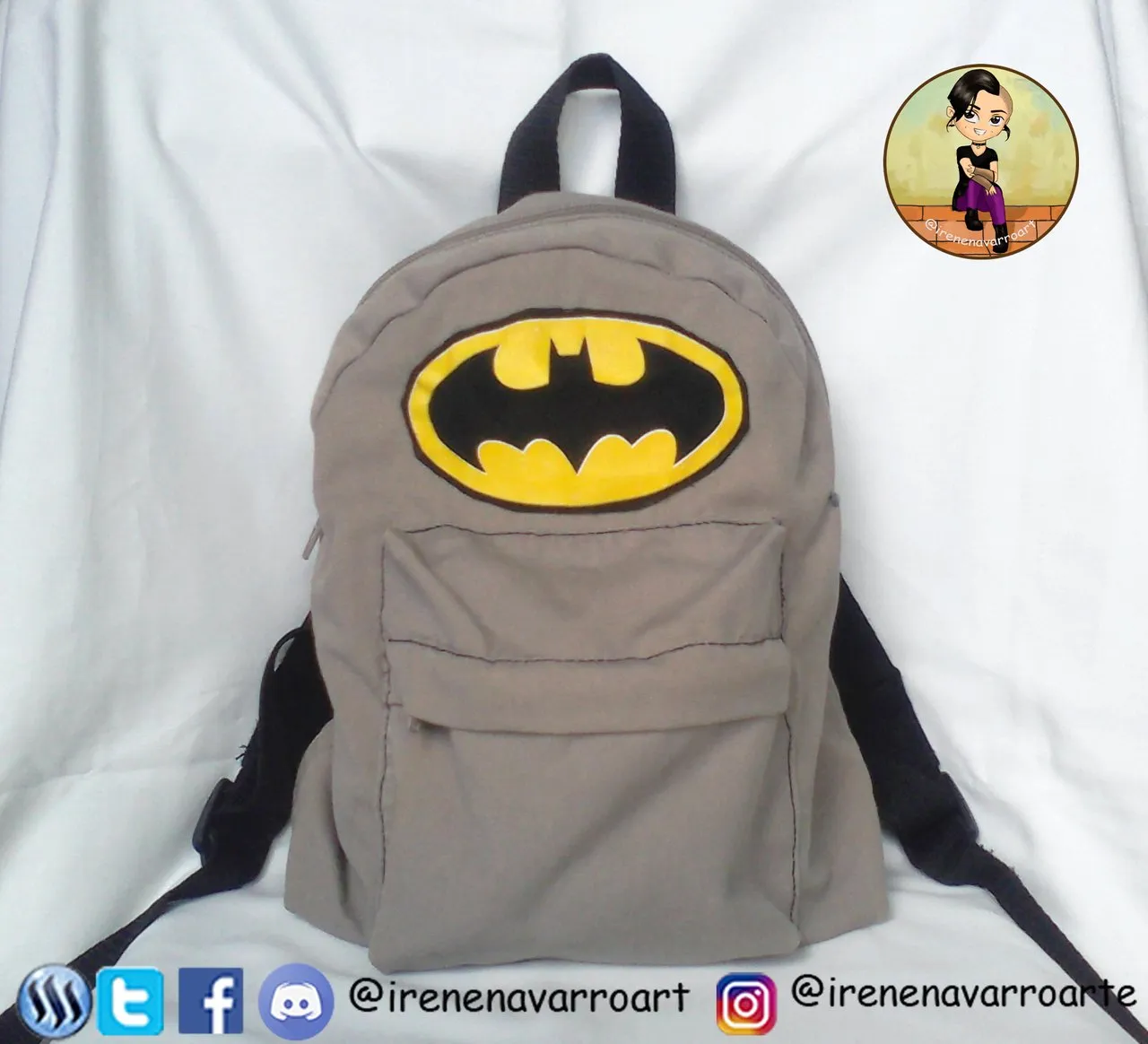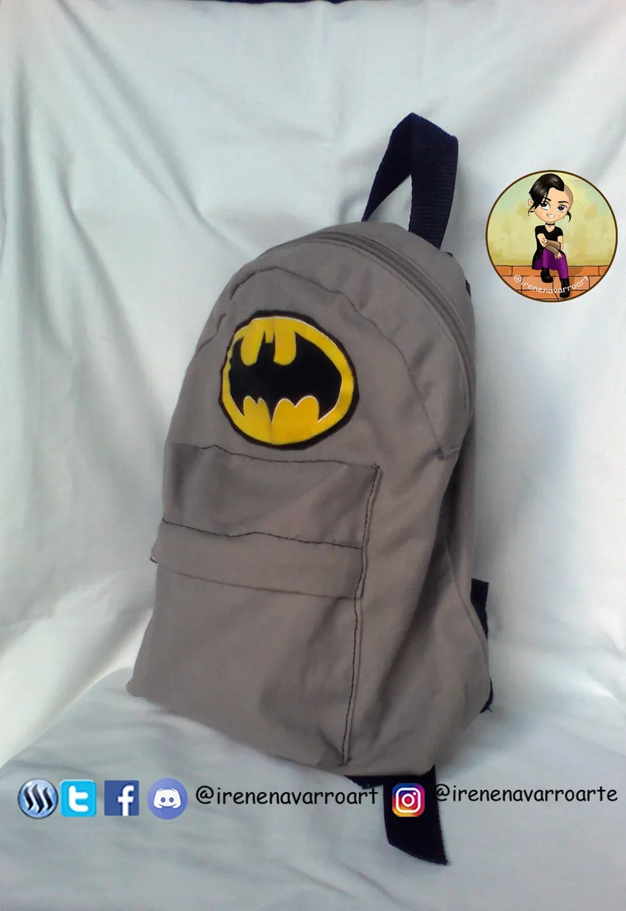 Asimismo, las tiras las recicle por completo de un bolso antiguo que estaba en muy mal estado pero cuyas tiras estaban intactas, le hice además un bolsillo con la misma tela y le coloqué un parche de Batman que pertenecía a una franela vieja, que además hace juego con su cartuchera y lonchera.