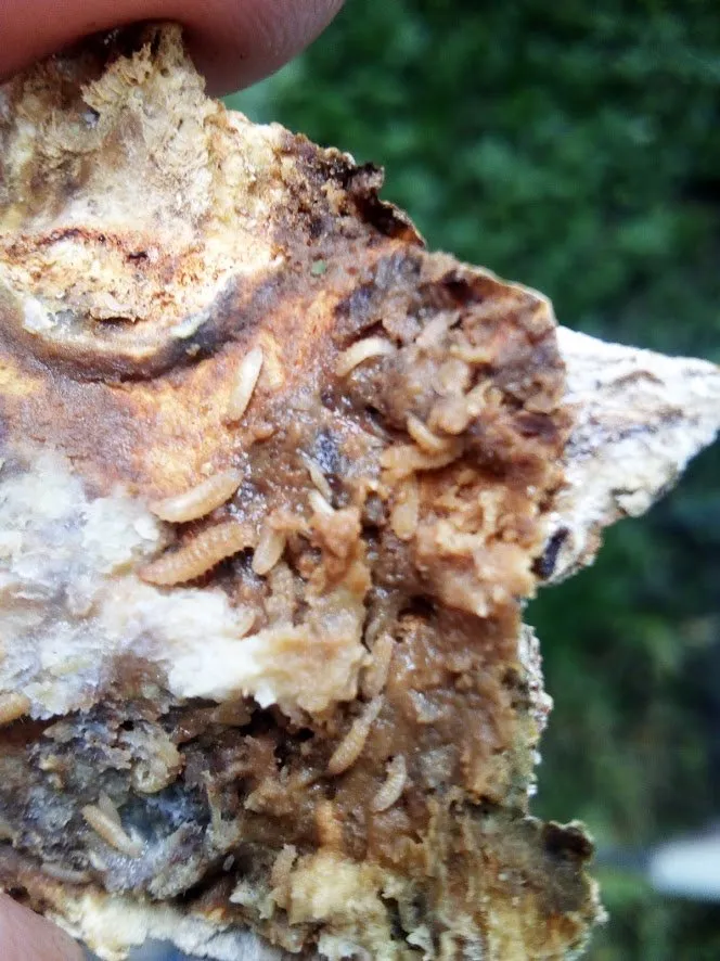 * O bien una gusanera (ignoraba que las plantas pudiesen sufrir de este mal), pero atacó a una de las plantas de lechosa, justo en la base que deja la hoja cuando se cae. Me recomendaron sacarle las hojas secas o en proceso de secamiento.