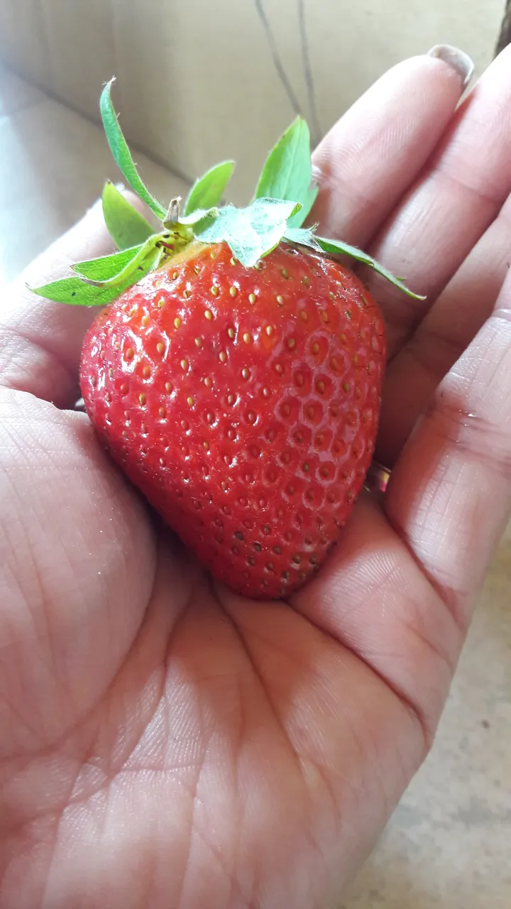 El aroma de las fresas impregna el huerto, caminar por el sembrario y ver un montón de puntitos rojos en todos lados, unas hermosas fresas que te invitan a probarlas, y entre tantas conseguimos una enorme fresa con 5 puntas, como dijo mi sobrina, una fresa extraterrestre.