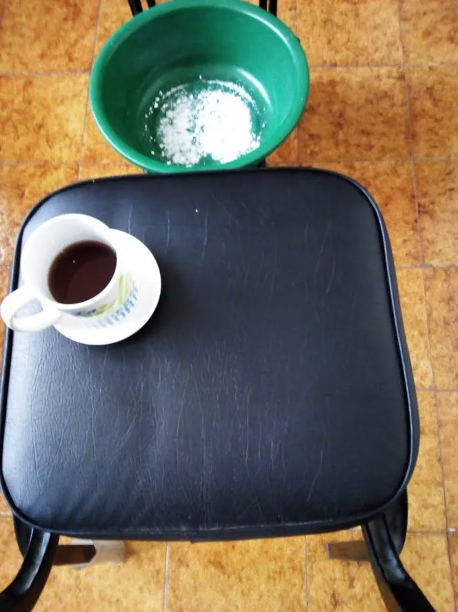 1.- Consigan una bañerita, coloquen en ella una cucharada de bicarbonato de sodio y un chorro de vinagre, y prepárese también una rica taza de te o café.