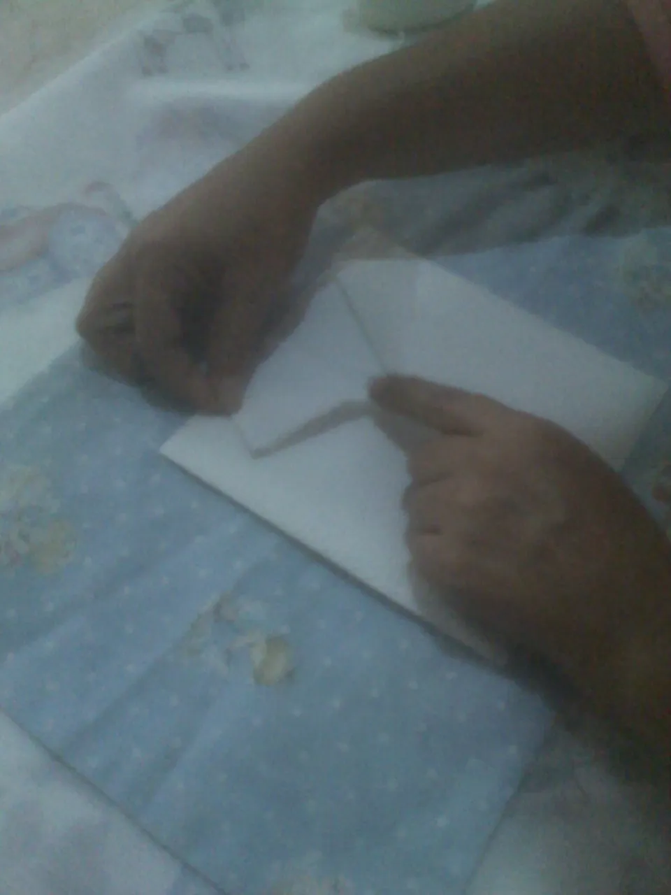 A partir del corte, se dobla hacia la parte posterior el extremo inferior de la servilleta y se le coloca un punto de pegamento