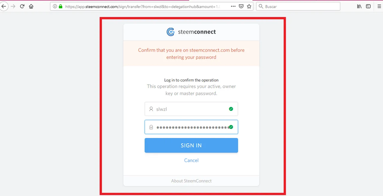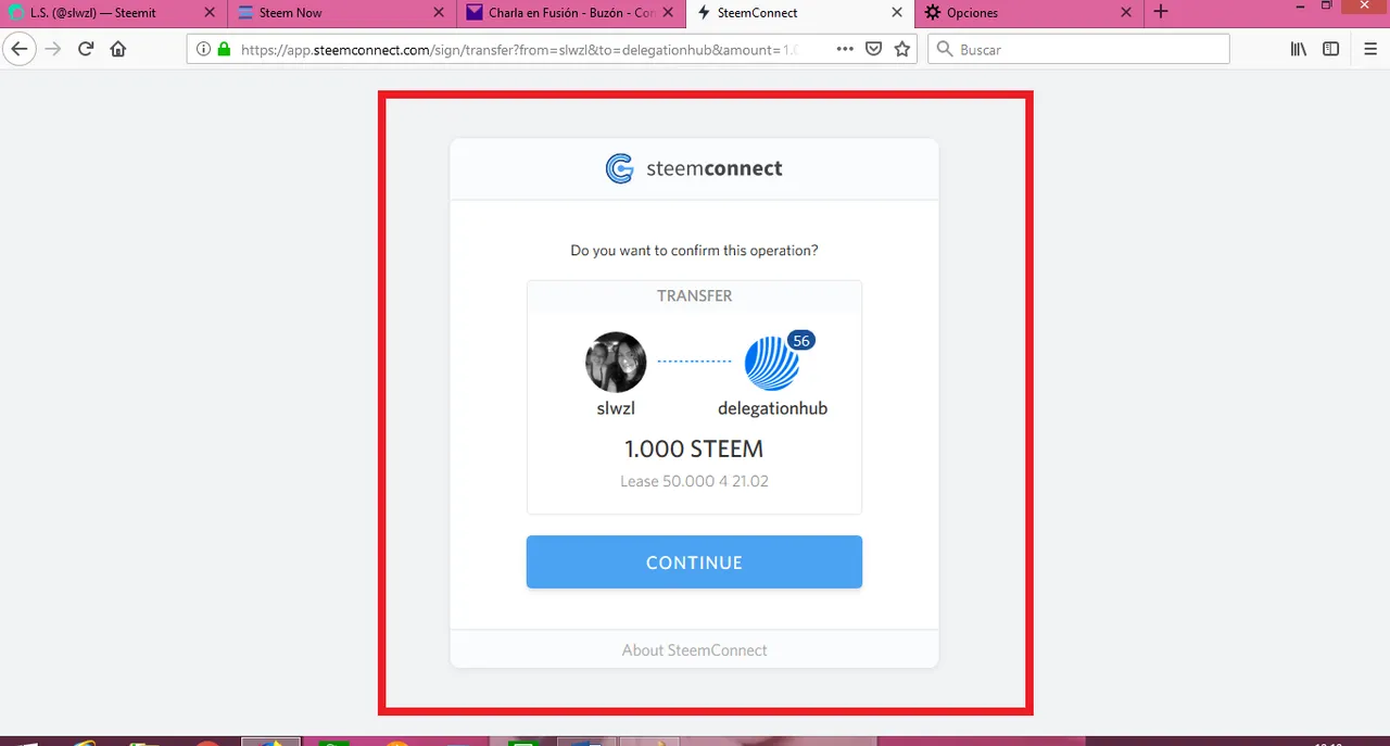 Paso 3. Continuar, utilizando steemconnect. Este paso es totalmente seguro y fácil: