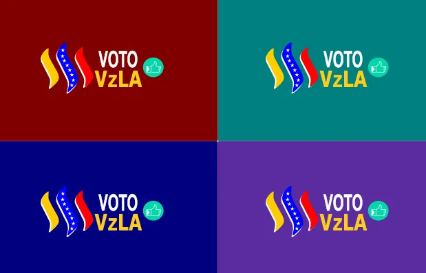 El logotipo de votovzla utiliza varios colores: el logotipo debe utilizarse sobre un fondo negro u otro color oscuro para lograr el máximo impacto y claridad.