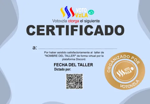 Realiza talleres en línea sobre diversos temas (sociales y técnicos), utilizando la herramienta Discord para lograrlo, estos cursos están certificados por votovzla. Los certificados son de asistencia.