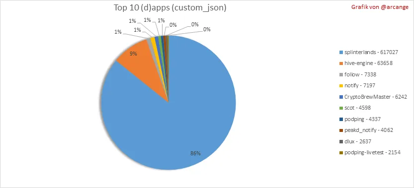 Dieses Diagramm zeigt, welche Apps die meisten Aktivitäten (custom_json-Operationen) in der Blockchain generieren.