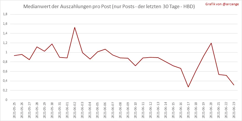 Diese Grafiken zeigen den durchschnittlichen Medianwert des Payouts pro Post der letzten 30 Tage.