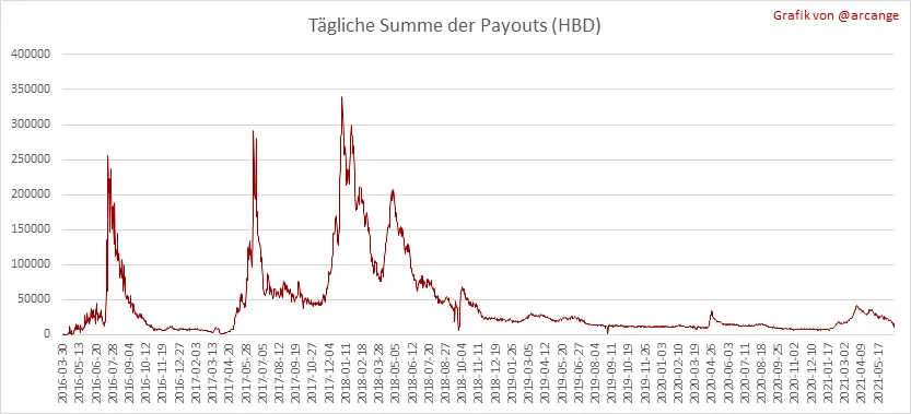 Diese Grafiken zeigen die Summe der verteilten Auszahlungen (Beiträge und Kommentare) an jedem Tag.