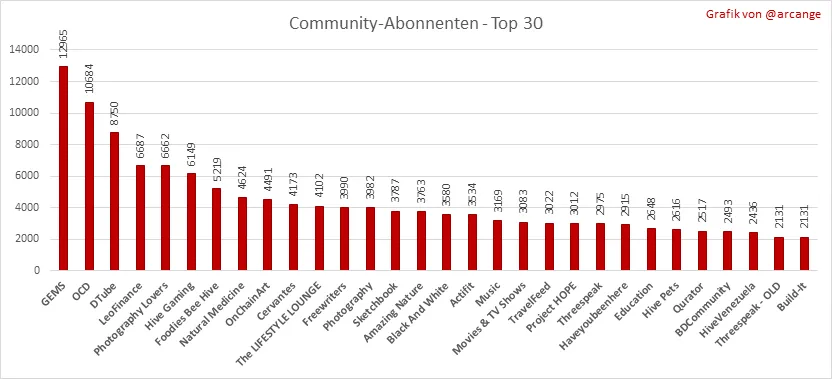 Diese Grafik zeigt die Communitys mit den meisten Abonnenten.