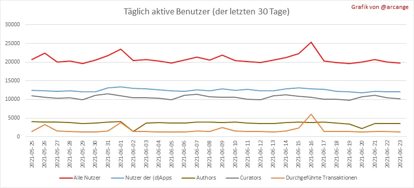 Alle in diesem Bericht enthaltenen Informationen basieren auf den Daten, die auf der Blockchain bis 2021-06-23 Mitternacht UTC gesammelt wurden. Ziel dieses Berichts ist es, einen klaren Überblick über die Vorgänge auf der Hive-Blockchain zu verschaffen.