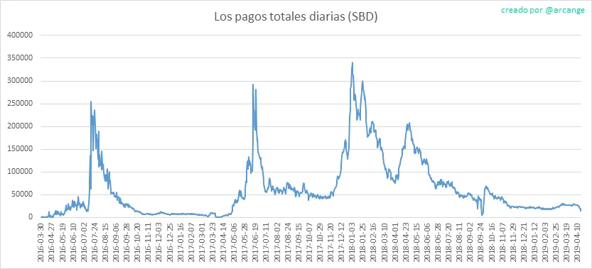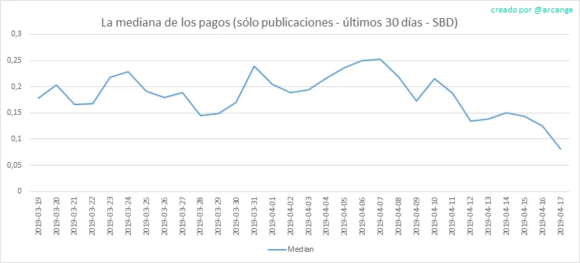 Estos gráficos muestran el total de los pagos distribuidos (mensajes y comentarios) para cada día.