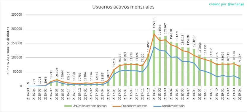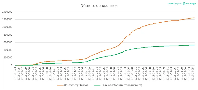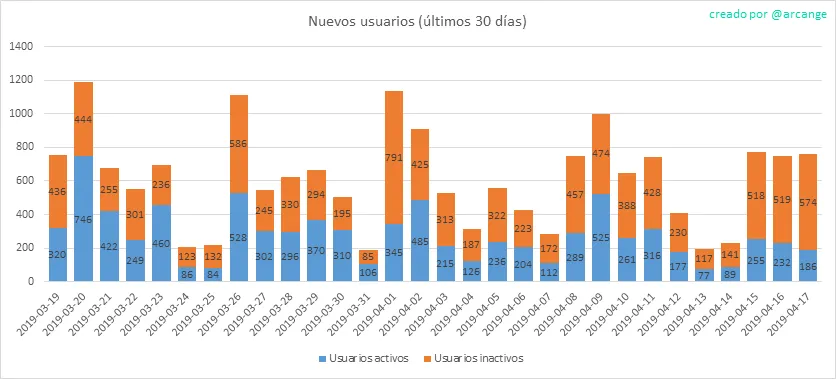 Estos gráficos muestran la actividad de los usuarios desde 2016 y en más detalles de los últimos 30 días.