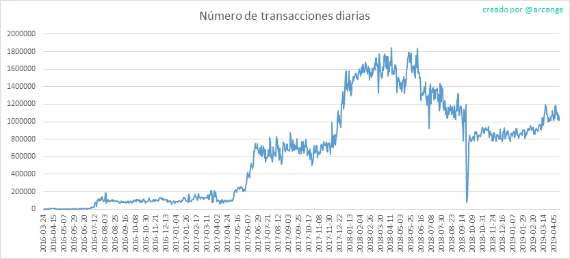 Este gráfico muestra el número de transacciones diarias. Esto le da una idea de toda la actividad en el blockchain.