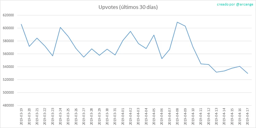 Estos gráficos muestran la evolución de la curación (upvotes) desde el inicio de la blockchain y durante los últimos 30 días.