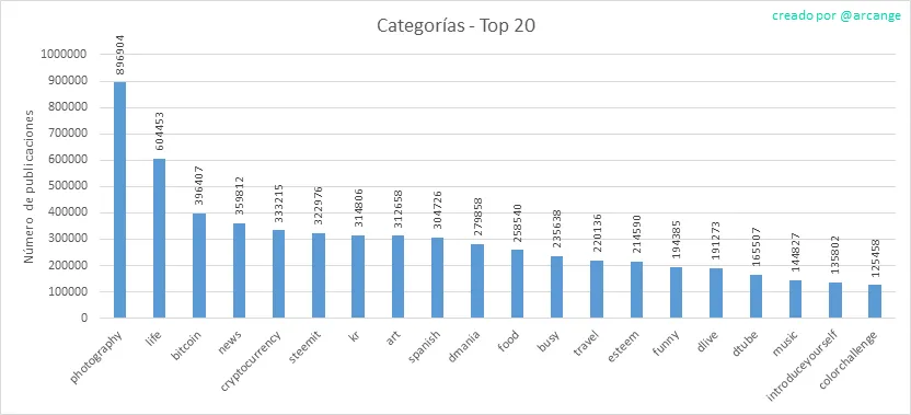 Este gráfico muestra la etiqueta ha sido el más utilizado para la publicación de los mensajes para toda la vida blockchain.