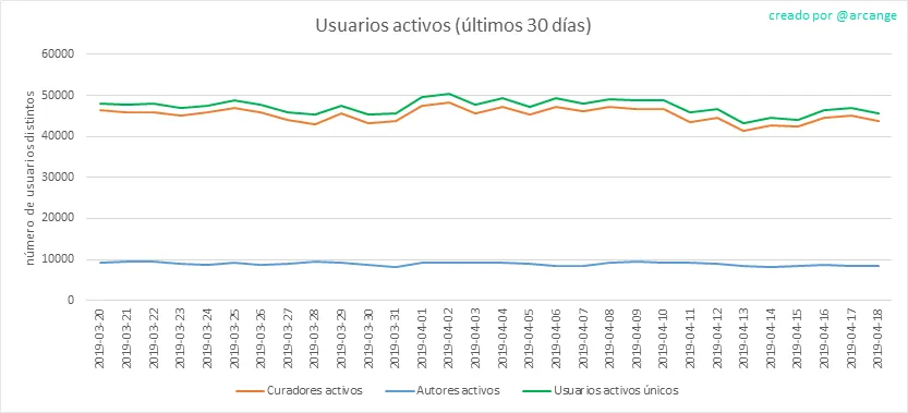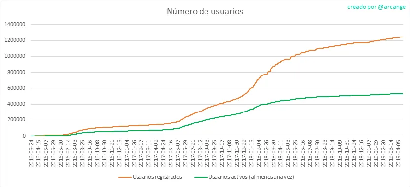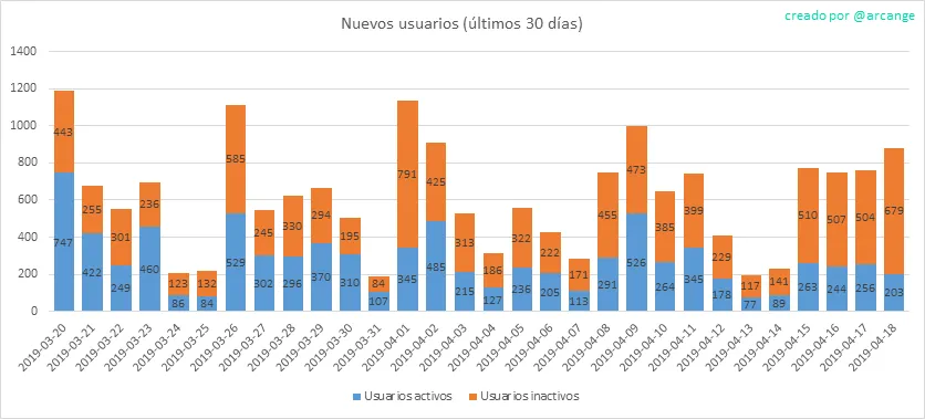 Estos gráficos muestran la actividad de los usuarios desde 2016 y en más detalles de los últimos 30 días.