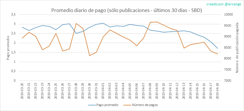 Estos gráficos muestran el total de los pagos distribuidos (mensajes y comentarios) para cada día.