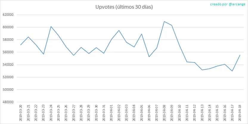 Estos gráficos muestran la evolución de la curación (upvotes) desde el inicio de la blockchain y durante los últimos 30 días.