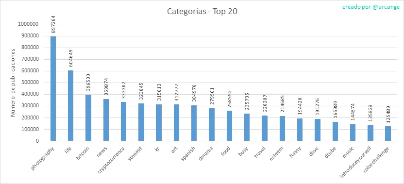 Este gráfico muestra la etiqueta ha sido el más utilizado para la publicación de los mensajes para toda la vida blockchain.