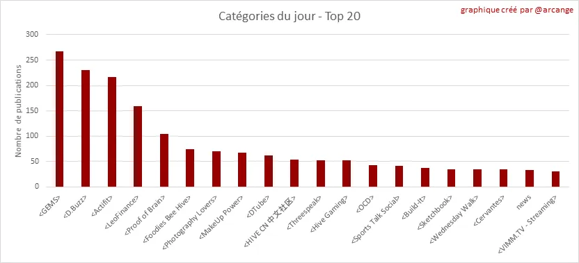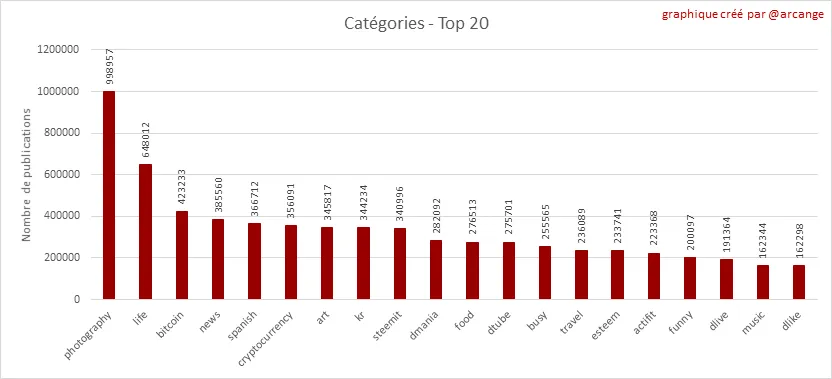 Ce graphique montre les catégories les plus utilisées pour les publications depuis la création de la blockchain et ce dernier jour.