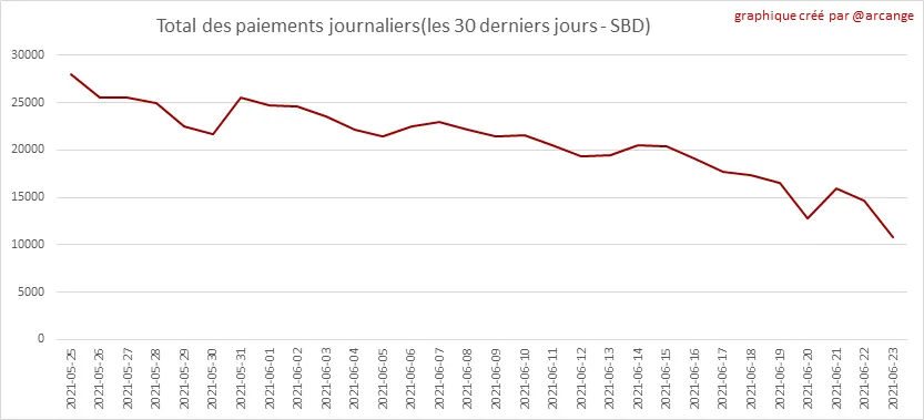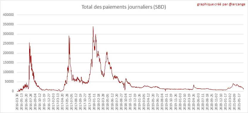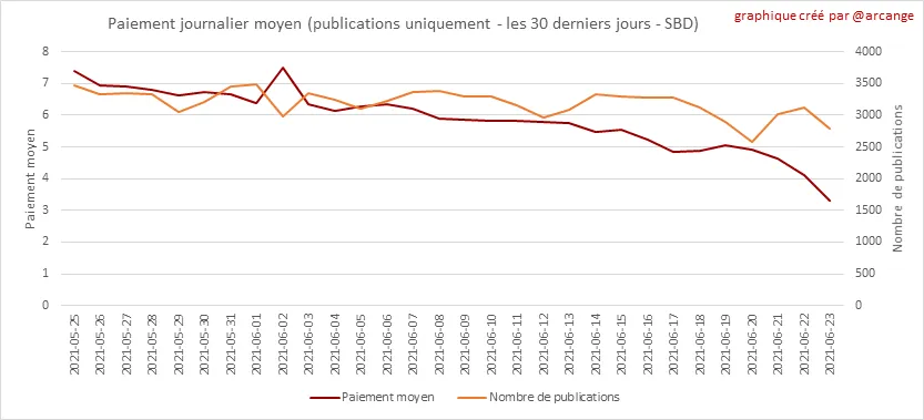 Ces graphiques montrent le total des paiements distribués (publications et commentaires) pour chaque jour.