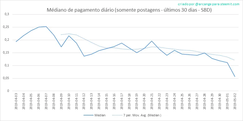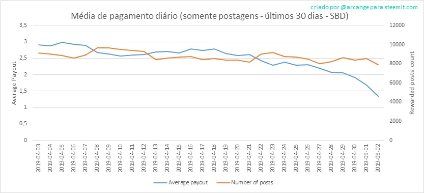 Este gráfico mostra a média de pagamentos por post nos últimos 30 dias.