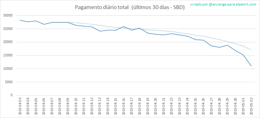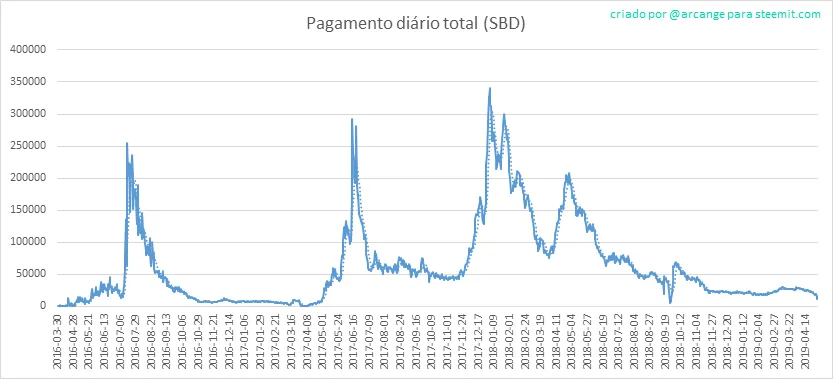 Este gráfico mostra o total de distribuicao de pagamentos (posts e comentários) por cada dia.