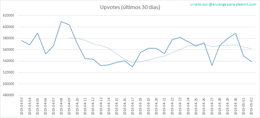 Esses gráficos mostram a evolução da curadores (upvotes) desde o início do funcionamento da blockchain e dos últimos 30 dias.