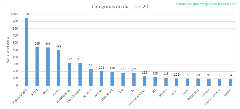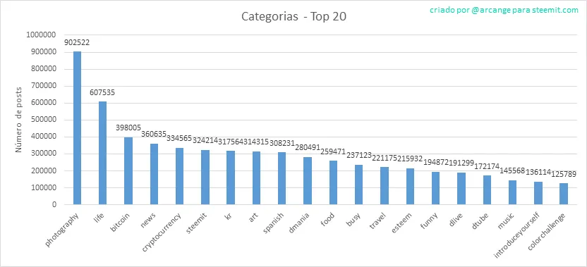 Este gráfico mostra as tag’s mais utilizadas para publicar postagens, desde o inicio do funcionamento da blockchain.