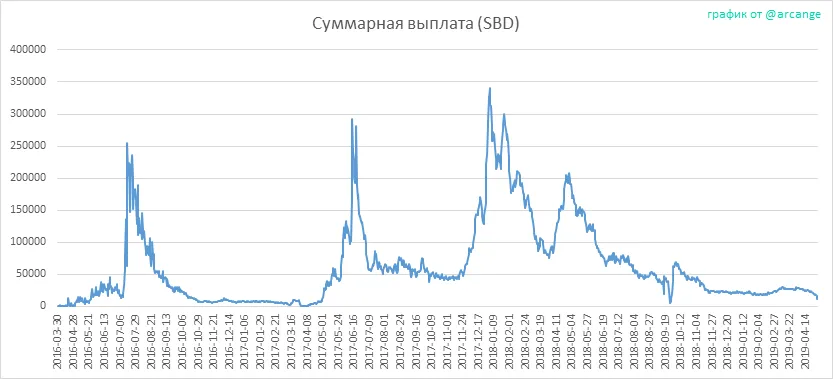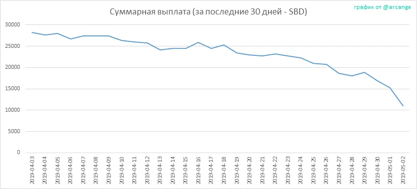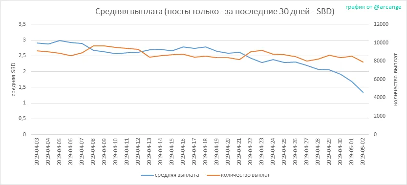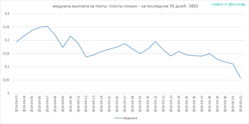 Этот график показывает ежедневную сумму выплат для всех постов и комментариев.