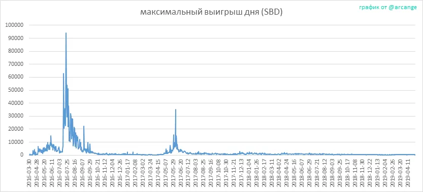 Эти графики показывают максимум выплат за пост (или комментарий) за каждый день.