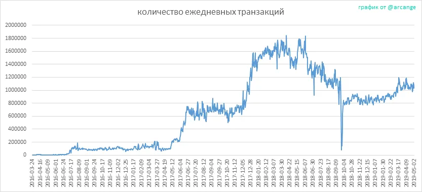 Этот график показывает количество ежедневных транзакции .Это дает представление о всей деятельности на блокчейн.